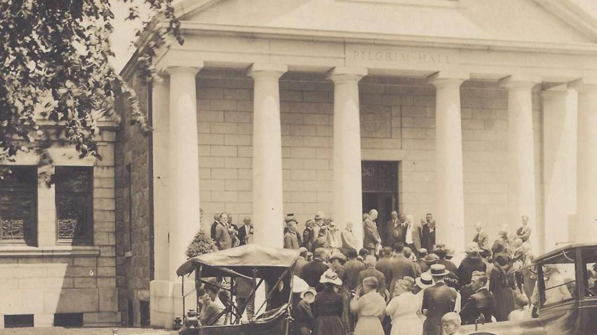 NES donates $50,000 to build a fireproof portico for Pilgrim Hall Museum (U.S. Register of Historic Places) in Plymouth, MA. Founded in 1824, it is the oldest public museum in the country.
